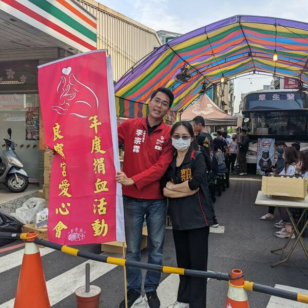 李宗霖響應台南東區良寶宮捐血活動,捐贈60包友善耕作白米,呼籲市民熱血助人,支持公...
